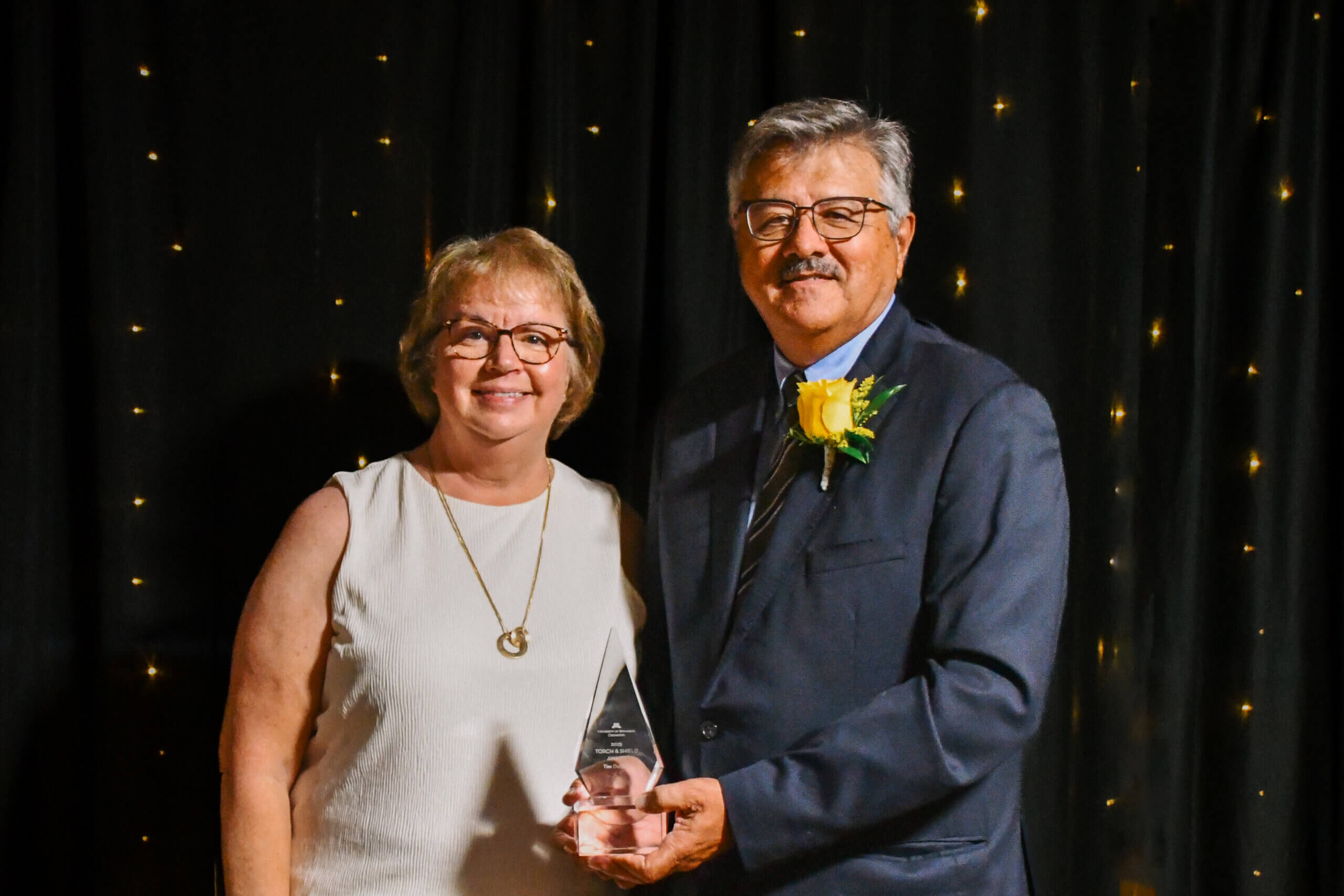 The University of Minnesota-Crookston biennial Torch and Shield Awards have been presented to Tim Dufault of Crookston and Paul and Kathy Imle of Gonvick. Dufault is an alumnus of UMC and a member of the Northwest Research and Outreach Center advisory committee and UMC Campus Advisory and Advancement Board. Dufault recently retired from farming. Paul and Kathy Imle own Pine Lake Wild Rice Farm and own a private foundation that provides college scholarships to high school graduates from northern Clearwater County. The Imle family is also a philanthropic partner of UMC.