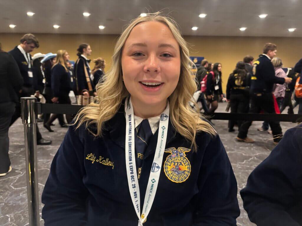 Sleepy Eye FFA member Lily Kallevig represented Minnesota in Prepared Public Speaking. Kallevig chose to talk about mental health in rural communities. ” I talked about the four factors that impact rural mental health challenges: accessibility, availability, affordability, and acceptability, and how they impact our rural communities.” Kallevig says that in researching the project, one fact stood out the most. “Farmers are three and a half times more likely to die by suicide; I really was trying to get the message out there that farmers are struggling, we need to support them, and it’s okay to ask for help.” Kallevig placed silver in the national competition.
